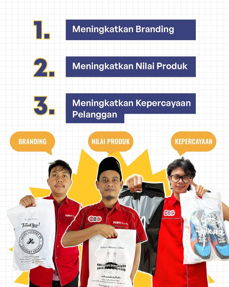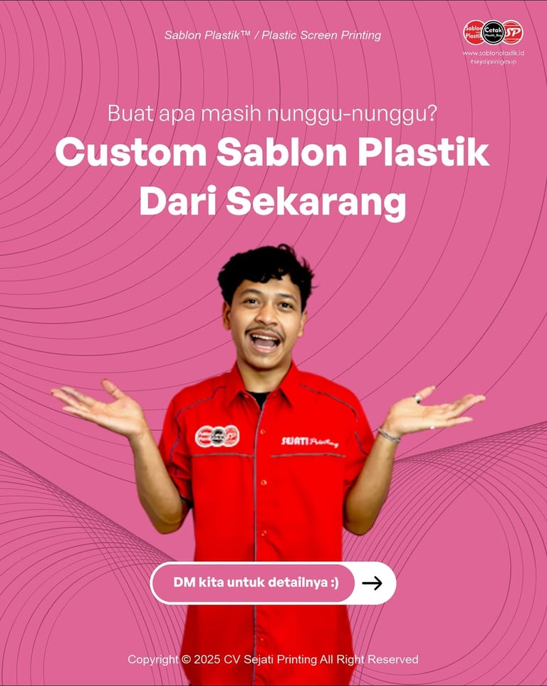 Saatnya naik level! Gunakan sablon plastik Sejati Printing dan buktikan sendiri bagaimana kemasan bisa meningkatkan citra bisnis Anda.